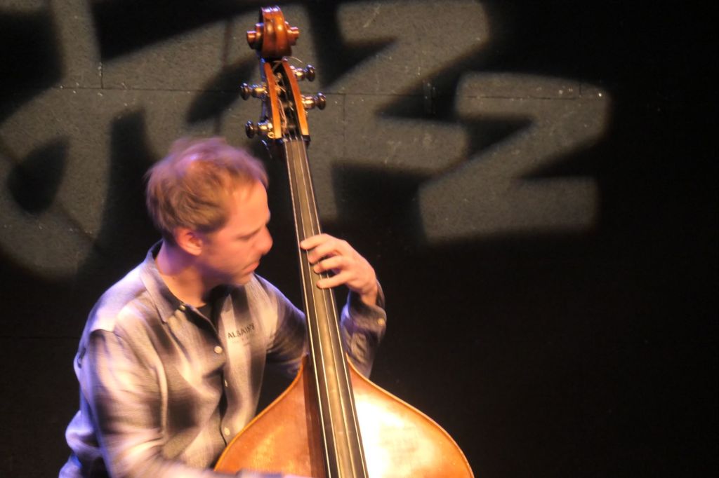 Das Knobil Grande Ensemble, wie es offiziell heisst, aus der französischen Schweiz, war eine energiegeladene Band. Die Leaderin Louise Knobil am Kontrabass und Gesang, mit Schlagzeuger, Gitarristin, Bassklarinettist, Altosaxophonist und Tubaspielerin, waren alle glitzernd angezogen. Sie spielten eine Mischung aus Chanson, Jazz und einer Prise Punk mit viel Glitzerattitüde. Louise Knobil sang Französisch, machte aber ihre Ansagen in charmantem Deutsch. Ihr Stimmumfang war verblüffend, von der Altstimme bis in Contersopran müsste man sagen, es war so hoch, es war kaum zu glauben. Mal sang sie chansonartig, dann wieder gesprochener und punkmässig oder ganz klarer Jazzgesang. Ihr Kontrabassspiel war ebenso verblüffend: Sie schrubbte den Kontrabass und spielte die Saiten in einem hohen Tempo mit wunderschönen Tonkombinationen.