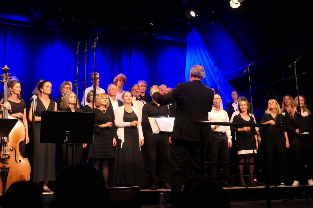 Der Chor fuhr mit weiteren Jazz-Standards weiter. Es folgte ein rätoromanisches Volkslied, welches die Jazzmusikerin Andrea Nydegger für den Jazzchor Bern arrangiert hatte. Bertrand Gröger, der Chorleiter, brachte ein spezielles und swingendes Arrangement vom deutschen Volkslied „Königskinder“ mit. Dort wurde nicht nur die Musik neu arrangiert, sondern auch der Text abgeändert, sodass die Geschichte ein Happy End bekam. Im zweiten Teil waren die Höhepunkte „S’Ramseyers wei go grase“, genial arrangiert von Xenia Zampieri und dann eine gesungene Vertonung vom „Totemügerli“, von Xenia Zampieri komponiert. Diese Interpretation war etwas gewöhnungsbedürftig, da der Text kein Gedicht ist, wurde er „Divers“ gesungen. „African Call“ von Bertrand Gröger war ebenfalls eine mitreissende und sehr wohlklingende Komposition. Das Konzert endete mit „*Birdland“ von Josef Zawinul und einer Zugabe. Der Chor sang schwierige, mehrstimmige Sätze und meisterte das bravourös. Von der Darbietung her können diese Laien mit Profis mithalten. Ein kleiner unschöner Punkt, war die Sängerin, welche im zweiten Teil permanent ihre Noten in einem kleinen Büchlein vor sich hatte, alle anderen sangen auswendig. Dies war wiederum ein tolles Konzert dieses ausgezeichneten Chors.