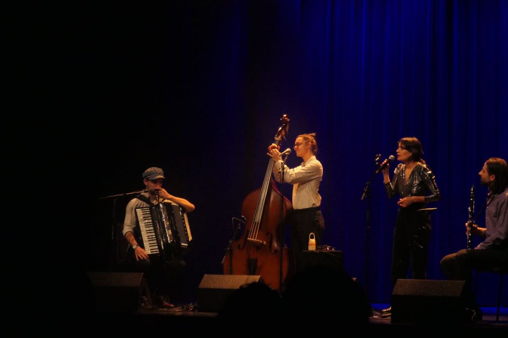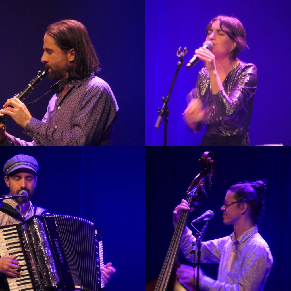 Ciçek Taksi sind Selin Dettwiler Gesang und Perkussion; Bidu Rüegsegger Kontrabass; Kaspar Eggimann Akkordeon und Simeon Schwab Klarinette. Das Quartett kommt aus Bern. Selin Dettwiler hat eine türkische Mutter und lernte so die türkische Sprache und die Volkslieder. Sie spielten in diesem Programm türkische Volkslieder und vertonte Gedichte aus der türkisch-kurdischen Diaspora in der Schweiz. Die Sängerin war am Anfang ziemlich nervös, wie sie selbst sagte, das legte sich aber im Laufe des Abends. Von der Nervosität merkte man als Zuhörer:in ohnehin nichts. Die Musiker spielten fantastische, feine, gewobene Musik. Akkordeon, Kontrabass und Klarinette spannten ihre musikalischen Fäden zu einem filigranen Muster. Die Sängerin sang klar und unaufgeregt. Die meisten Stücke erklärte sie kurz und so gingen die Lieder teils richtig unter die Haut. So sang sie das Lied von der zerstückelten Erde und dem Menschen mit gebrochenem Herzen und einem zerstörten Gehirn. Aber auch die vertonten Gedichte über den abendlichen Hofgang im Gefängnis mit den Zeilen „Eins nach vorn, Eins zurück, wie das Weben von Freiheit“. Ebenso eindrücklich das Lied „Für die Mütter“, wo jeden Tag eine andere Mutter ins Gefängnis kam und allen zu essen brachte. Selbstverständlich wurde türkisch gesungen. Viele waren Liebeslieder, oder ein Lied handelte von der Hochzeit. Ciçek Taksi kommt als Ganzes daher, also Gesang und Musik sind gleichwertig. Ein grosses Erlebnis.