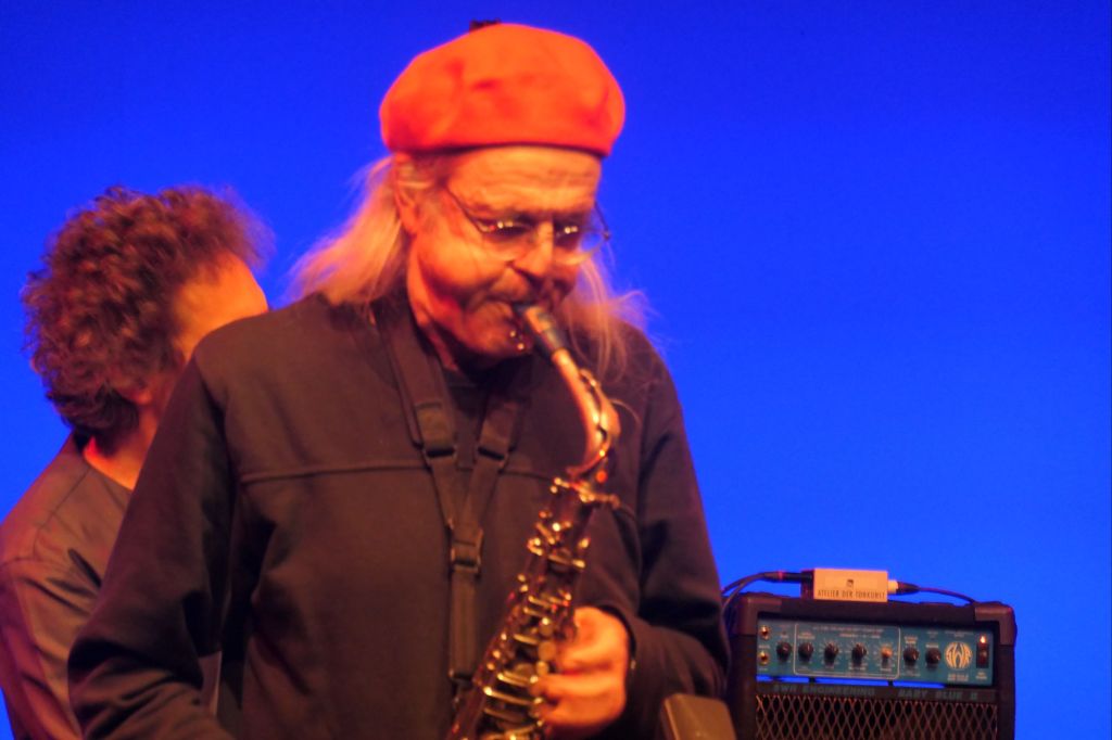 Nun kommen die Altmeister zum Zug. Neben Donat Fisch an den Saxophonen stehen Ralph Alessi an der Trompete da, Bänz Oester am Kontrabass und hinter dem Schlagzeug sass Norbert Pfannmatter. Die vier Männer spielten wunderschönen Jazz auf spezielle Art. Die Soli der beiden Bläser liefen ineinander über, zwischenzeitlich manchmal parallel und gegeneinander. Bass und Schlagzeug sind zwei alte eingespielte Kumpel, sie schafften es tolle Bass/Drum Solos zu spielen oder auch alleine zu solieren. Der Trompeter spielte dazwischen auch eine vierventilige Piccolo-Trompete. Das vierte Ventil sei etwas schwer und schwieriger zu drücken, erklärte der Mann mir nach dem Konzert.