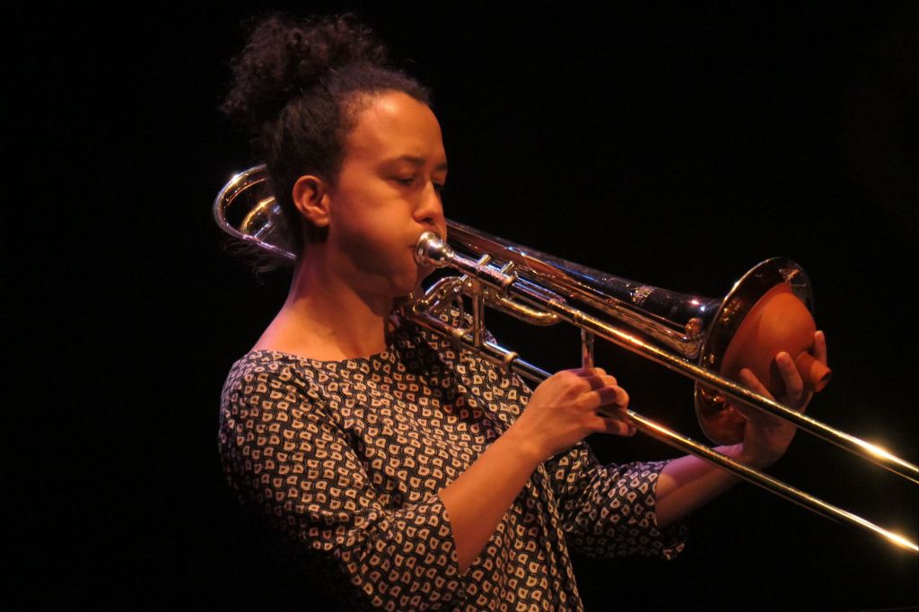 Das Trio mit Julia Rüffert (Posaune), Paula Häni (Bassklarinette) und Anatole Buccella (Gitarre) startete den Abend im BeJazz Club. Sie spielten Stücke mit deutschen Titeln und teils konnte man auch die Inspiration erkennen, wie z.B. „Atemlos“. Sie spielten erstaunlich feinfühlige Musik mit den beiden Blasinstrumenten und der Gitarre. Da spielten die Blasinstrumente einen holprigen Groove und der Gitarrist jagte scharfe Licks hinein. Oft war die Soundästhetik aber ausgeglichener und auch der Gitarrist spielte fast akustisch, oder die Posaune gab etwas mehr und längeren Ton. Beide Frauen beherrschten die Zirkularatmung, was mit drei Instrumenten einen vollen Sound gab. Es war eine sehr interessante Musik. Der einzige Negativpunkt war, dass Julia Rüffert zu viel redete und sich oft wiederholte. Spannende Musik welche eine bessere Präsentation verdiente.