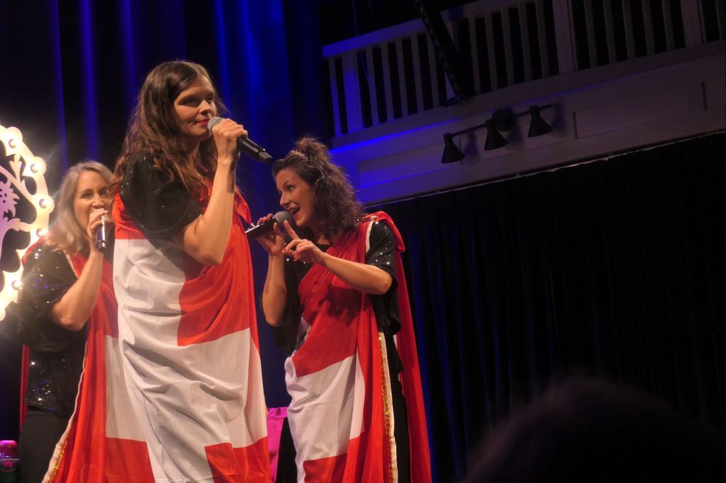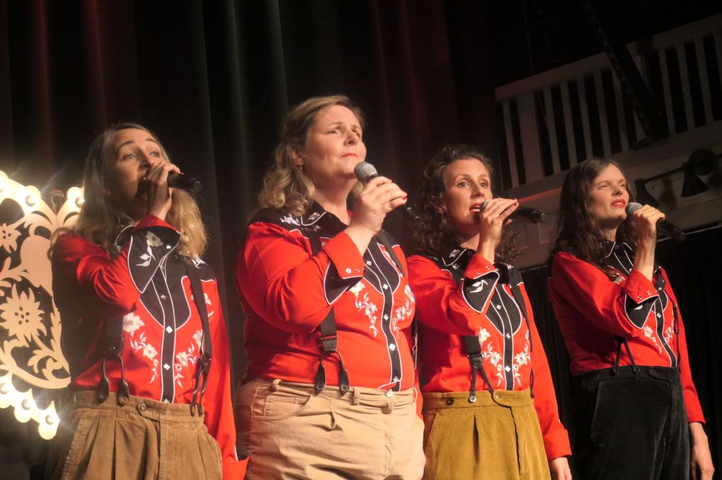 Die vier Frauen und Sängerinnen traten als Hörnertragende Tiere wie Steinbock und Gämse auf die Bühne. Sie wurden als Touristenattraktion angekündigt. Sie starteten mit „Lueget vo Bärg und Tal“ und veränderten den Text dazu, wie bei allen Liedern. Die Texte wurden an die Frauen angepasst und wurden auch sozialkritisch. Die Arrangements waren alle zusammen sehr speziell, grossartig und immer so, dass man das Lied erkannte. Das Repertoire umfasste viele Volkslieder und Schweizer Popsongs. „S Burebüebli“ wurde zu „Frau sucht Bauer“, „Ludmilla“ von Patent Ochsner fand ihren Weg aus der Prostitution zurück in ihre Heimat. So gab es musikalisch viele Überraschungen. Also, Ohrenspitzen und Mitdenken lohnten sich.