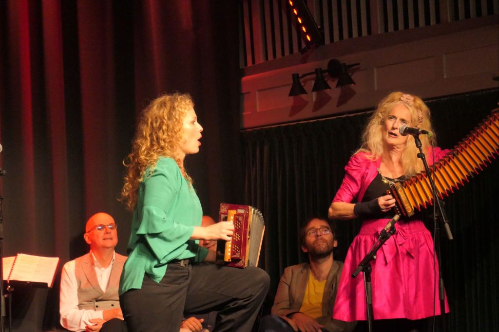 Dann war Pause. Nachher startete gleich wieder Caroline Bungeroth. Dieses Mal setzte sie sich mit den Unterschieden der deutschen Sprache und der Berner Mundart auseinander, erzählte, wie sie Schweizerin wurde, und spielte auf dem Schwyzerörgeli sie jodelte noch dazu. Zusammen mit Christine Lauterburg, örgelten die Frauen und jodelten. „Mir Senne heis luschtig“ bekam dann noch einen deutschen Anhang.