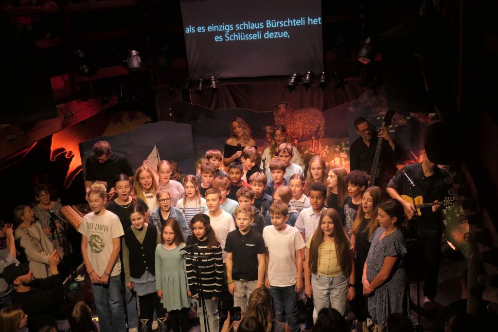Nach der Pause sang die 5./6. Klasse von Rubigen, auf der Bühne, ein paar Lieder mit. Sie sangen auf eigenen Wunsch noch ein rätoromanisches Lied.