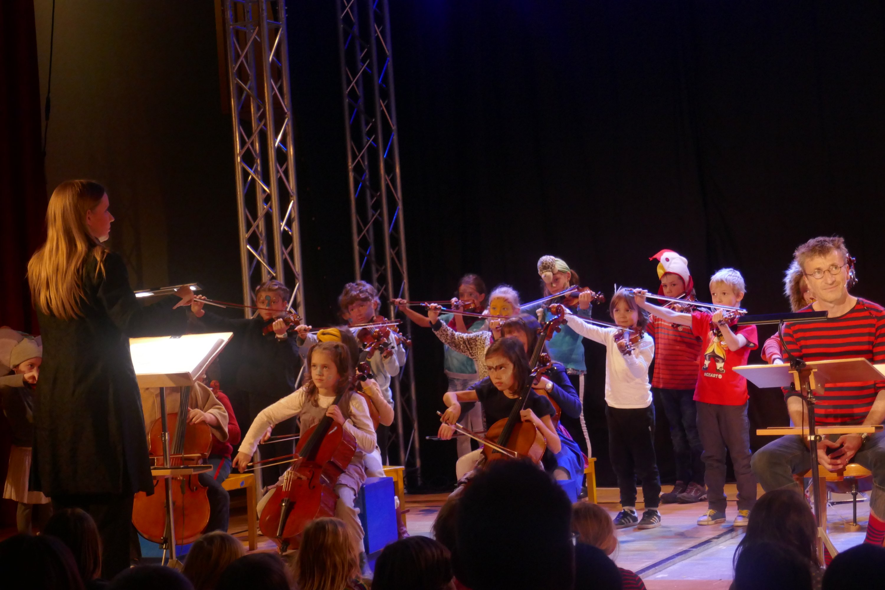 Der Saal war von vielen Kindern besuchtund natürlich ihren Eltern. Die Leiterin der Tigernande liess die verschiedenen Instrumente vorstellen, optisch wie akustisch und fragte die Kinder wie das Instrument heisst. Dann stellte sich Lorenz Pauli vor und erklärte dass die Geschichte zweimal erzählt würde, einmal mit Worten und einmal mit Musik. So wurde dann „Karneval der Tiere“ gespielt mit den Kindern der Tigerbande, den fünf Bläsern und einer Pianistin. Die Geschichte dazu erfand Lorenz Pauli neu. Sie handelte von einem Kindergeburtstag auf dem Estrich und alke Kinderverkleideten sich in Tiere. Er ptäsentierte das sehr schön und unser 4jähriger Enkel war hoch konzentriert dabei. Ein eindrücklicher Nachmittag, vor allem die Arbeit mit der Tigerbande und die Präsenz von Lorenz Pauli.